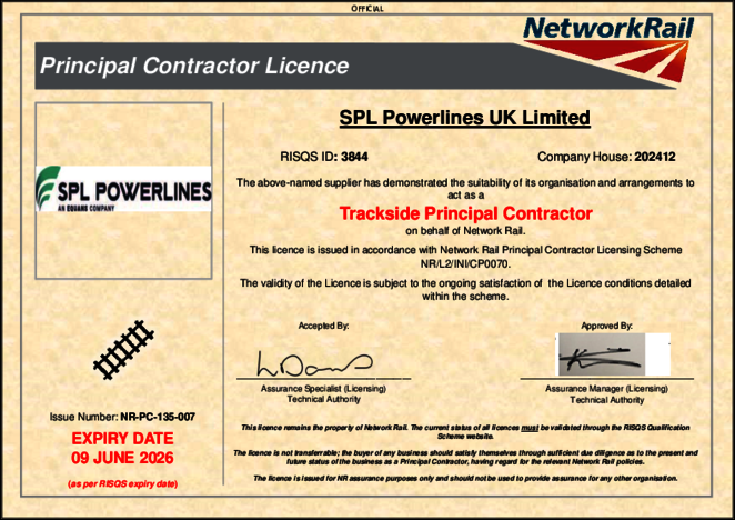 SPL Powerlines holds a Principal Contractor Licence.