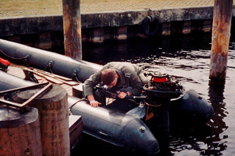 René war Pioniertaucher bei der Bundeswehr, hat also Gewässer nach allem Möglichen abgesucht. Pioniertaucher machen all das, was andere Menschen über Wasser tun, nur eben unter Wasser: Während seiner Zeit dort ist er in unterschiedlichsten Gewässern getaucht. Er hat nach Gegenständen, Hindernissen oder auch zu Übungszwecken nach Minen gesucht. Sprengen, Schweißen und auch Brennschneiden gehören natürlich auch zu diesem Job. Gewässer sichern für den anschließenden Einsatz von amphibischen Fahrzeugen oder Motorbooten. Teilweise ist auch für den Bau von Brücken die Unterstützung eines Berufstauchers notwendig.